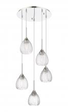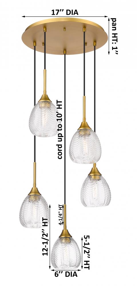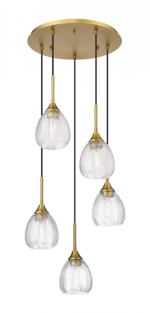 Berkshire - 5 Light - 19 inch - Brushed Brass - Cord Hung - Multi Pendant