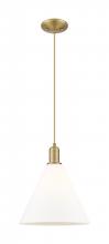 Berkshire Glass - 1 Light - 12 inch - Antique Brass - Matte White shade - Cord hung - Mini Pendant