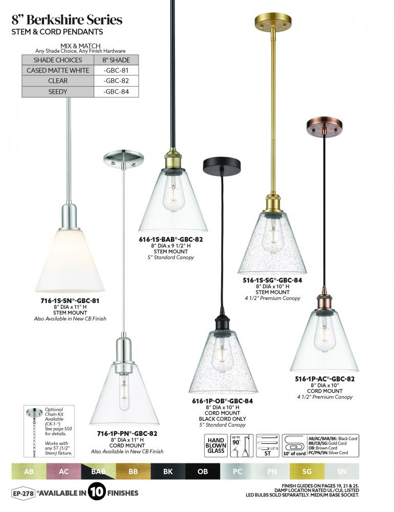 Berkshire Glass - 1 Light - 8 inch - Antique Brass - Stem hung - Mini Pendant
