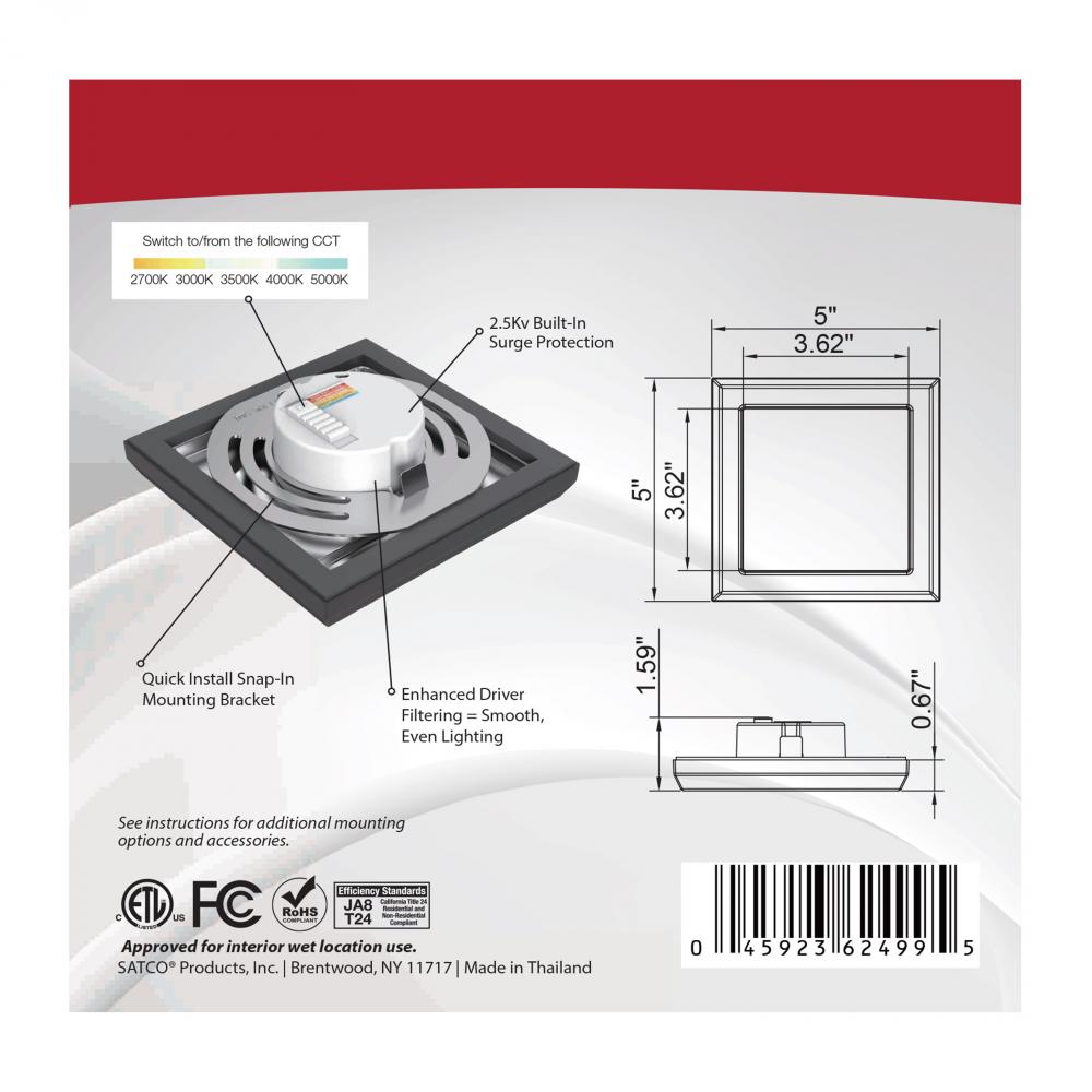 Visit Satco.com for optional accessories: 5 inch square extension collar; White - 25-1704, Black - 25-1705, Bronze - 25-1706