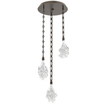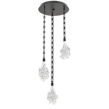 A whimsical celebration of organic design, this inspired round multi-pendant chandelier features 3 Blossom pendants suspended from a round canopy. Each hand-blown Blossom glass shade is a one-of-a-kind artisan creation. Suspension options include cloth-braided cord or handcrafted chain in three vintage-inspired styles.
