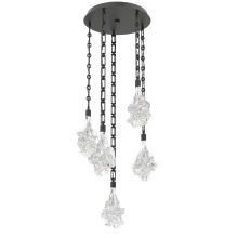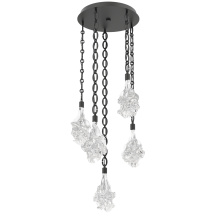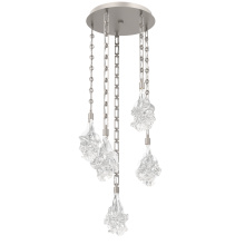 A whimsical celebration of organic design, this inspired round multi-pendant chandelier features 5 Blossom pendants suspended from a round canopy. Each hand-blown Blossom glass shade is a one-of-a-kind artisan creation. Suspension options include cloth-braided cord or handcrafted chain in three vintage-inspired styles.