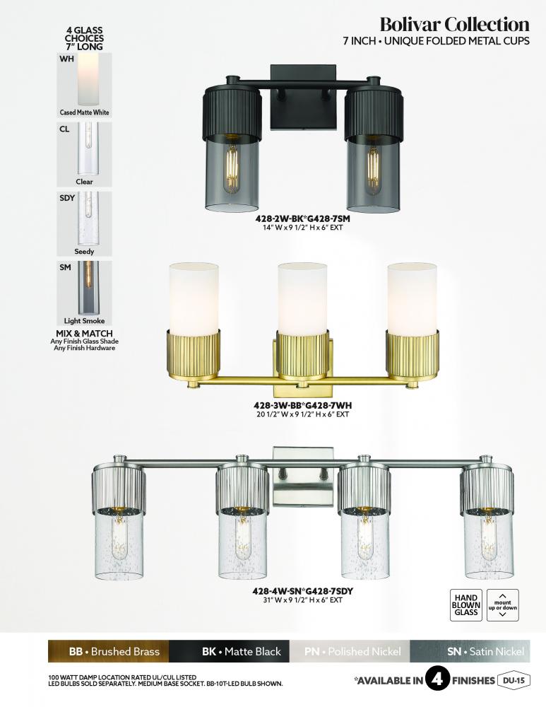 The stately Bolivar Collection is a study in architectural design and subtle details. The stylish and stately ribbed base houses a cylindrical glass shade.