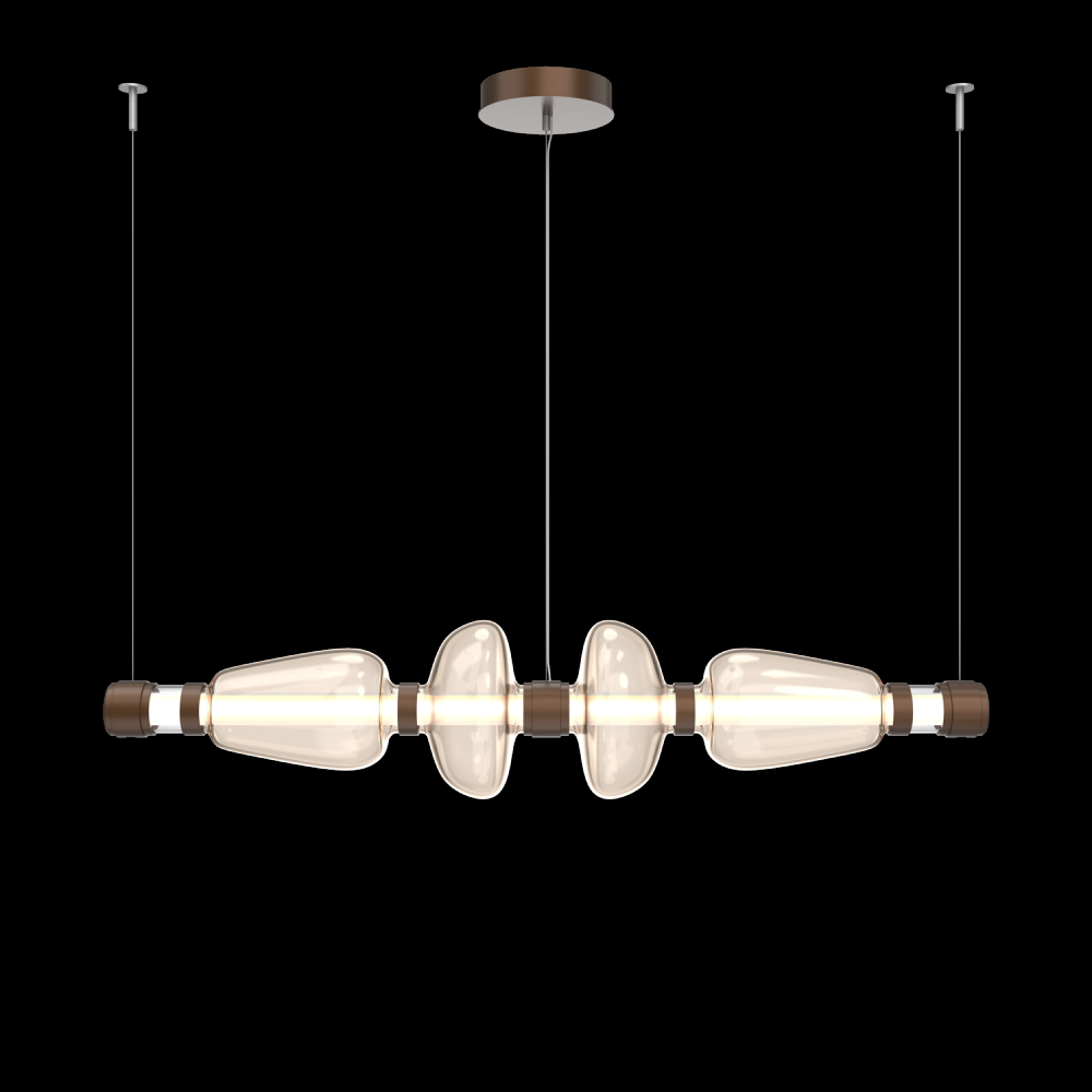 Bolla Mandrel 52 - Inch Linear - Burnished Bronze - Amber Blown Glass - Stainless Cable - LED - 3000K