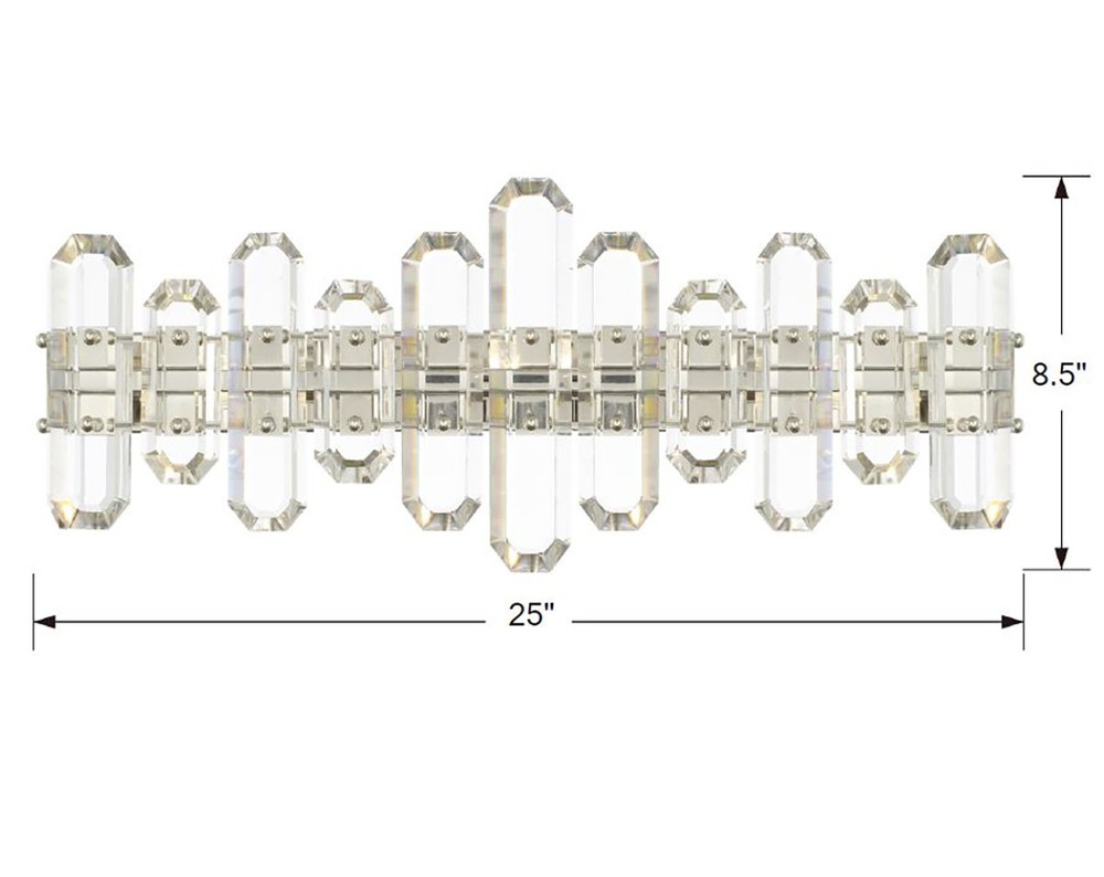 The Bolton Collection exudes glamour and luxury when placed as a focal point in the room. The varying sized faceted cut crystal panels are secured to a floating steel frame. The unique crystal prisms reflect beautiful light that creates an endless sparkle that elegantly blend with many home décor styles.