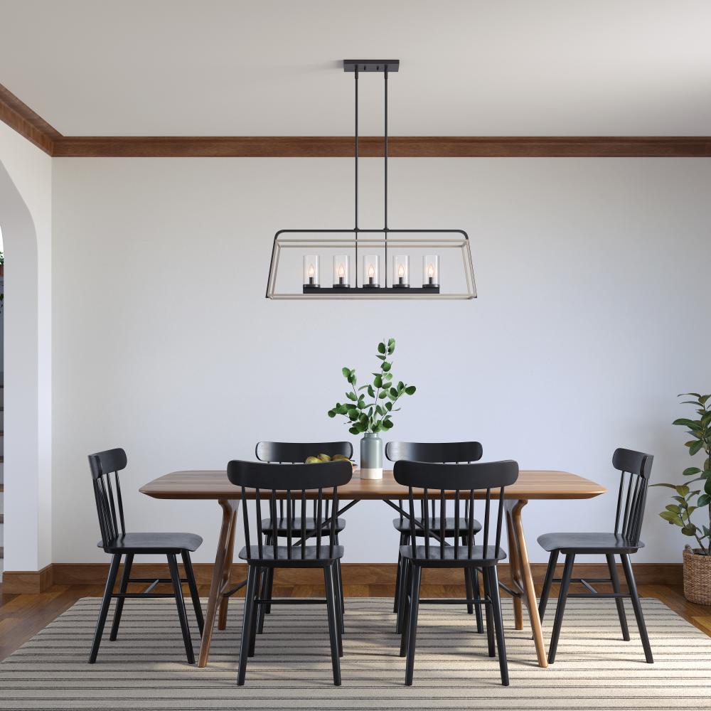 Place this fixture in your dining room or family room, over tables and islands