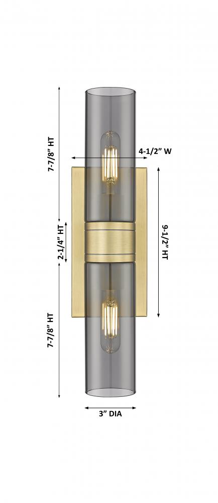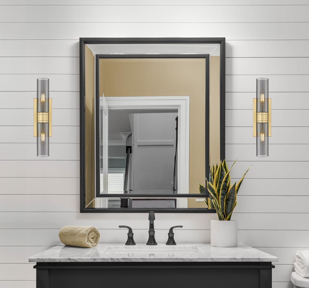 Boreas - 2 Light - 18 inch - Brushed Brass - Light Smoke Shade - Bath Vanity Light