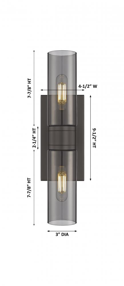 Boreas - 2 Light - 18 inch - Oil Rubbed Bronze - Light Smoke Shade - Bath Vanity Light
