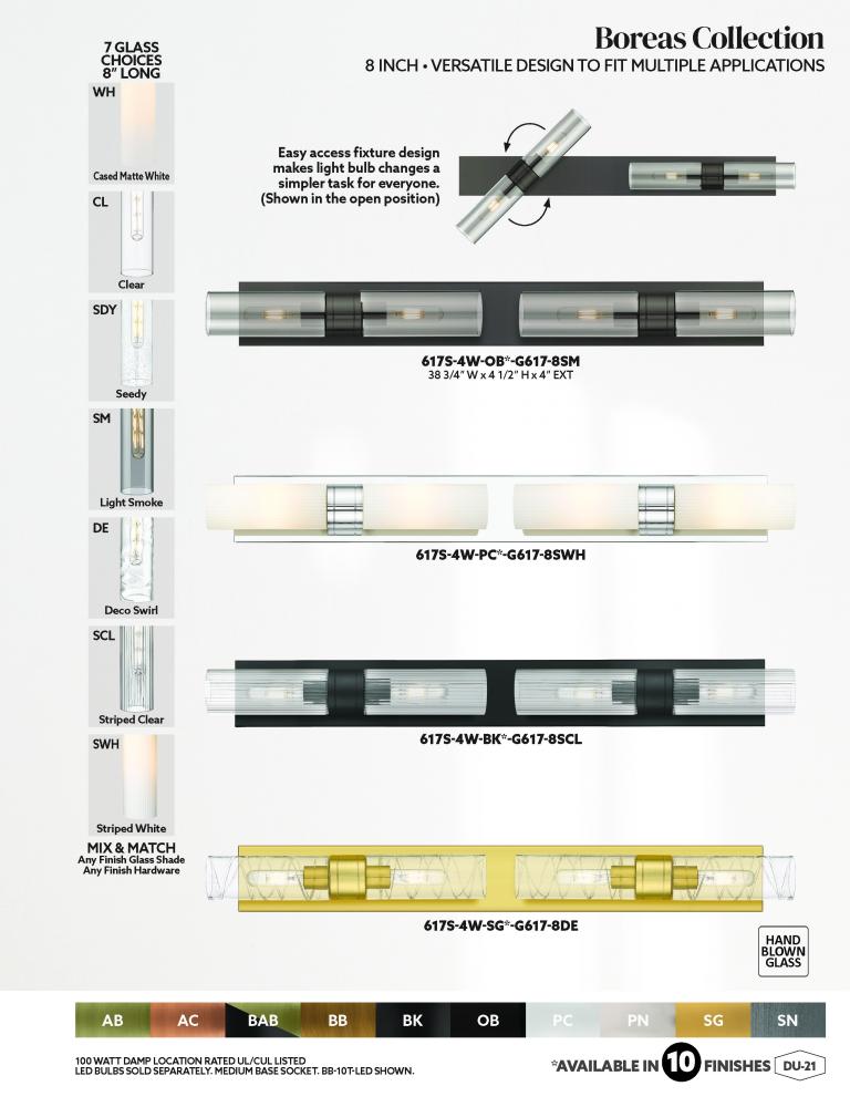 Looking for the sleek style of the Ballston but the ability to add a little flair? The Boreas can be fitted with any of the glass or metal shades from the Franklin collection to create a custom fixture that fits your needs.