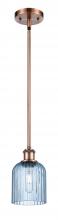 Bridal Veil - 1 Light - 5 inch - Antique Brass - Princess Blue Shade - Mini Pendant