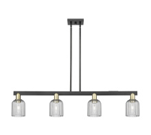 Bridal Veil - 4 Light - 48 inch - Antique Brass - Clear Deco Swirl Shade - Stem hung - Island Light