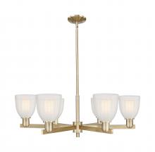 Brookfield - 6 Light - 36 inch - Antique Brass - White shade - Stem hung - Chandelier