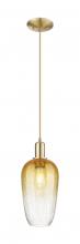 Brookhaven Flute - 1 Light - 6 inch - Antique Brass - Amber Brookhaven Flute Shade - Cord hung - Mini Pendant