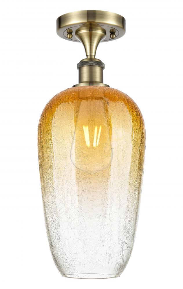Brookhaven Flute - 1 Light - 7 inch - Antique Brass - Amber Brookhaven Flute shade - Semi-Flush Mount