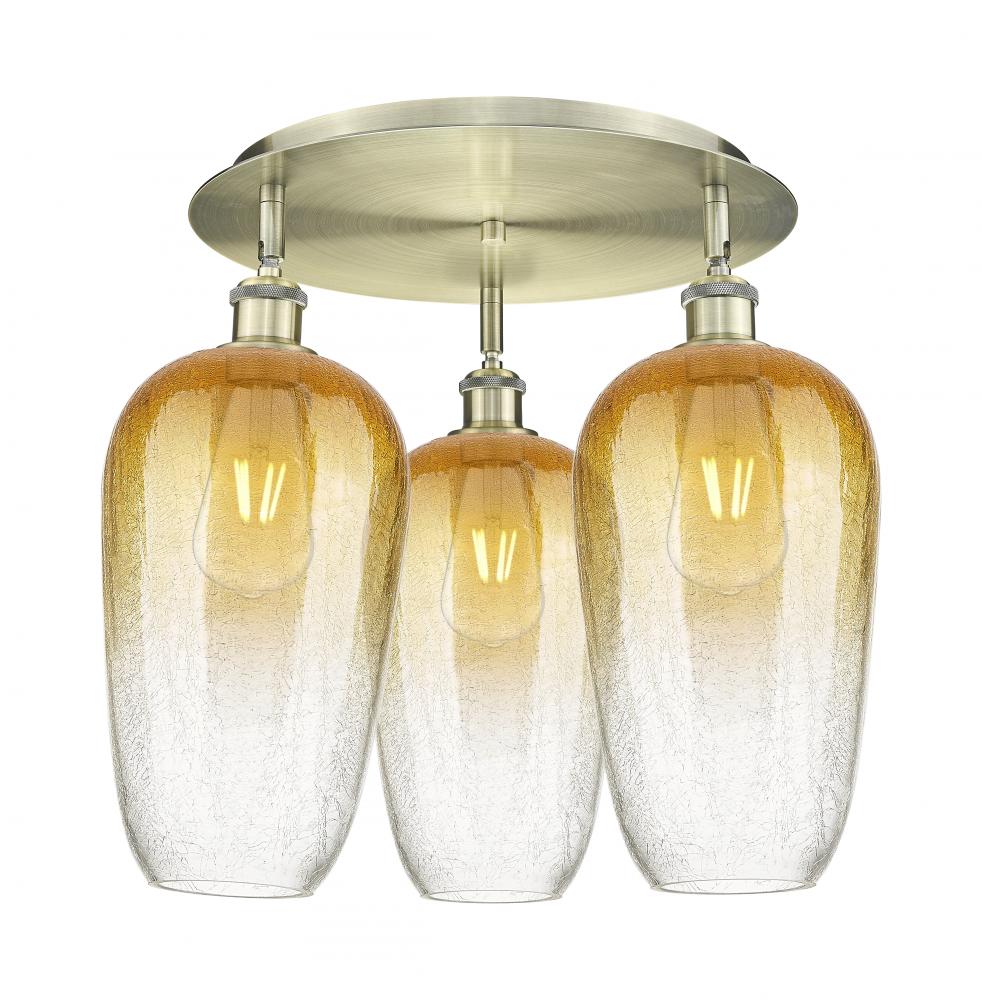 Brookhaven Flute - 3 Light - 19 inch - Antique Brass - Amber Brookhaven Flute shade - Semi-Flush Mount