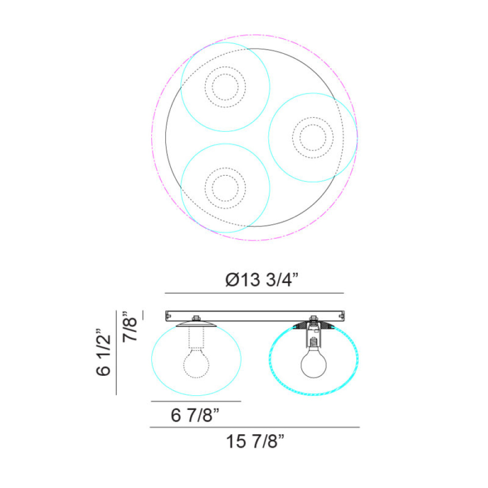 3 LT 16"DIA "BULBUS" MATTE BLACK CEILING MOUNT / CLEAR GLASS G9 LED 10W