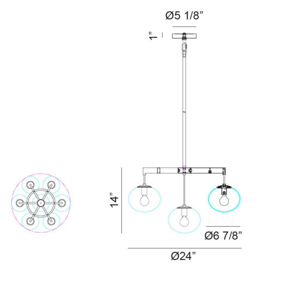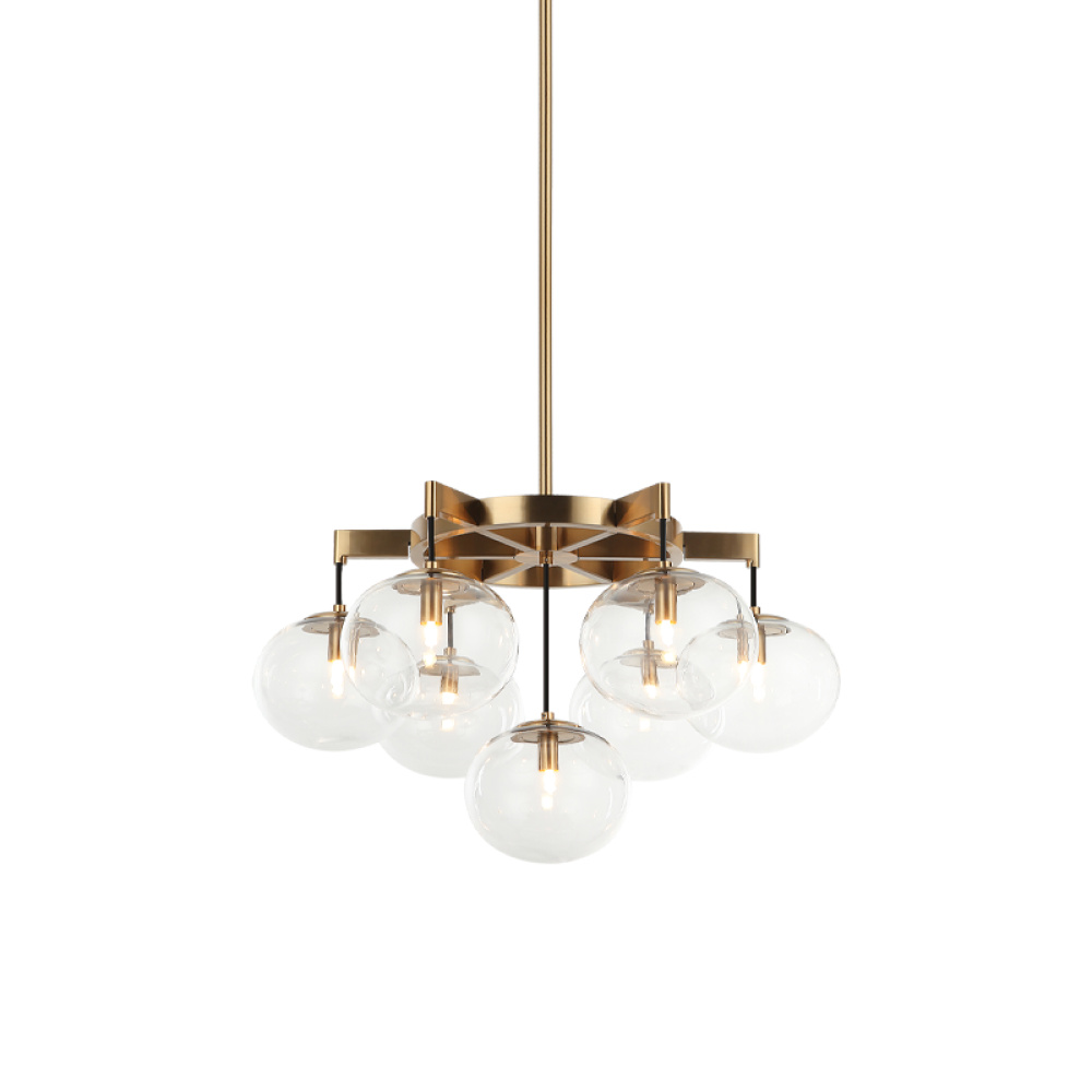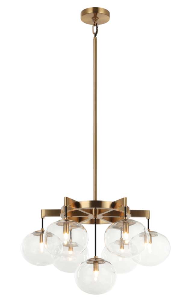 7 LT 24" DIAM "BULBUS" AGED GOLD/CEILING CLEAR GLASS CHANDELIER LED G9 LED 10W