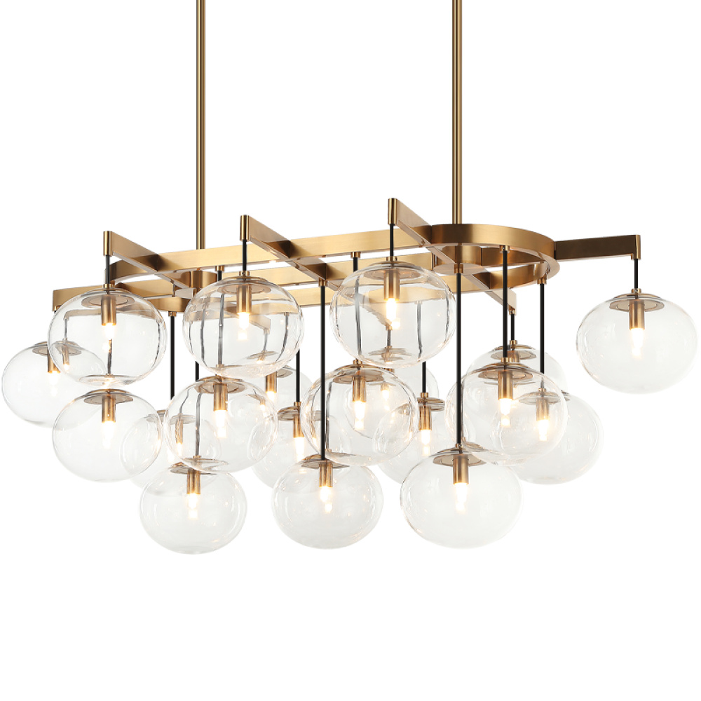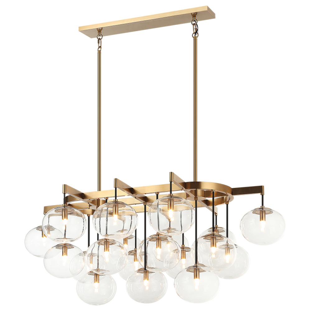 19 LT 46"L "BULBUS" AGED GOLD/CEILING CLEAR GLASS CHANDELIER LED G9 LED 10W