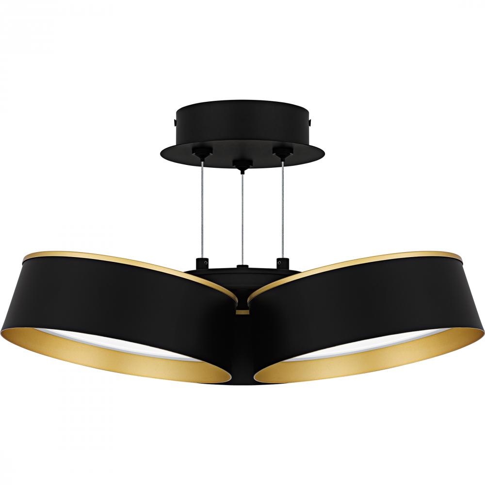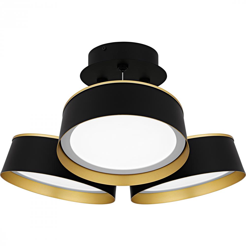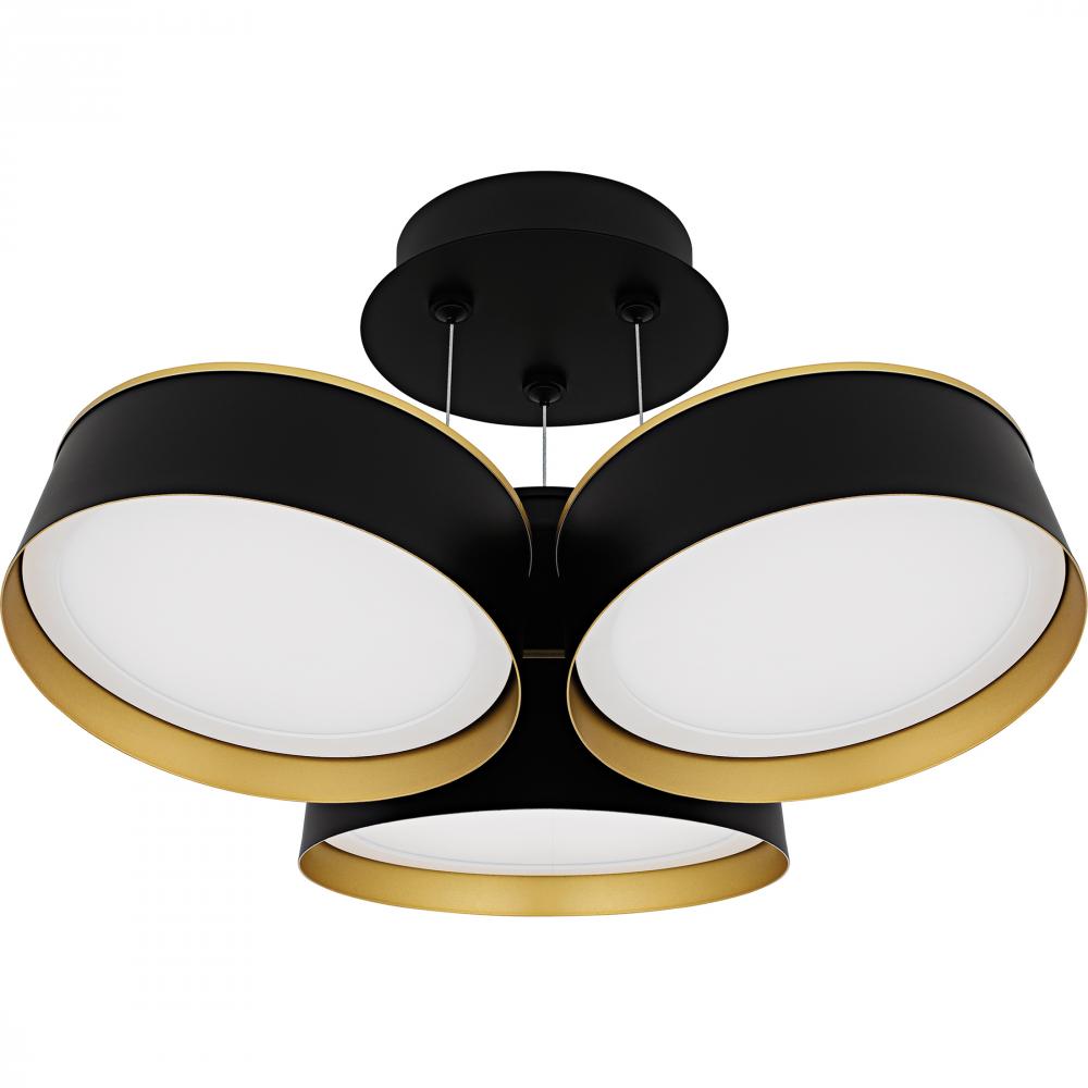Elevate your space with Byrnes, where modern design meets luxury. The striking combination of matte black and gold creates a sophisticated look in this unique fixture. Featuring a cluster of round metal shades, each equipped with an integrated LED light so
