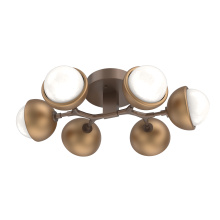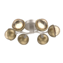An intriguing ceiling light that nods to midcentury style, this versatile branch-style flush mount features six Cabochon sculptural fusions. Each is made of artisan blown crystal glass and polished stone or metalwork in a colorful selection of single and two-tone finishes.