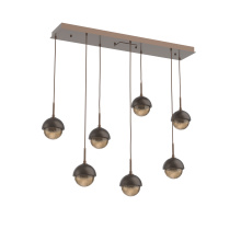 Cabochon 7pc Linear Multi-Pendant-Burnished Bronze-Clear Glass with Black Marble-Cloth Braided Cord