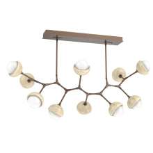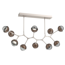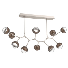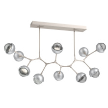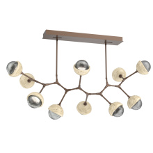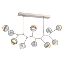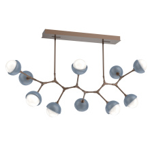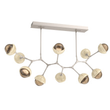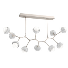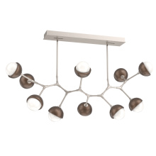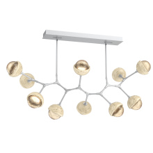Juxtaposing traditional, organic and modern elements, the Cabochon Modern Branch linear suspension pairs integrated LED-lit artisan blown glass with hand-polished steel. The look is bold and surprisingly versatile, elevating a range of interiors from modern and contemporary to rustic and transitional.