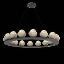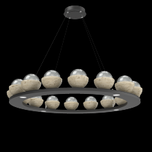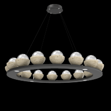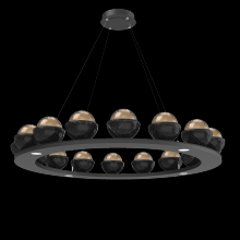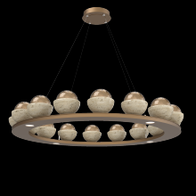 Cabochon 48" Platform Ring-Burnished Bronze-Clear Glass with Black Marble-Stainless Cable-LED 2700K