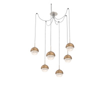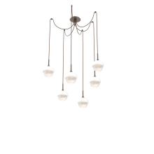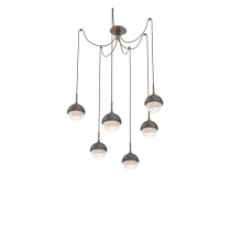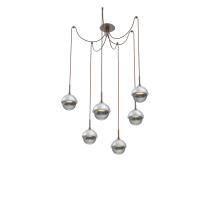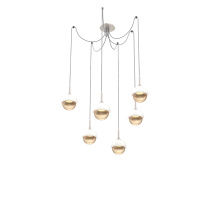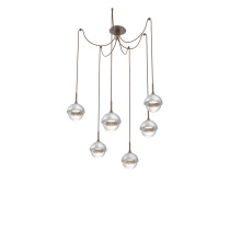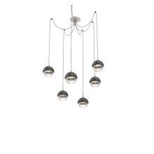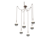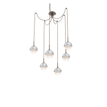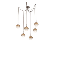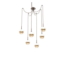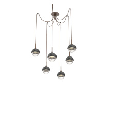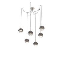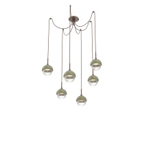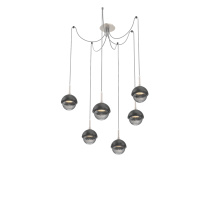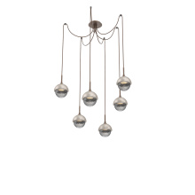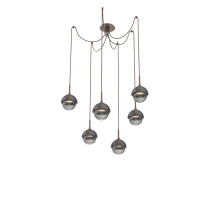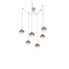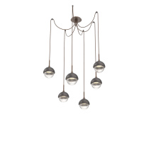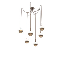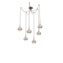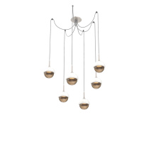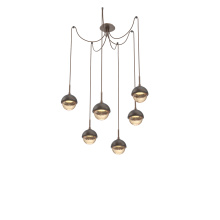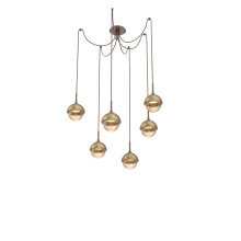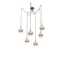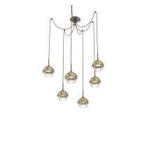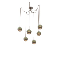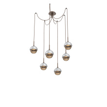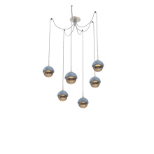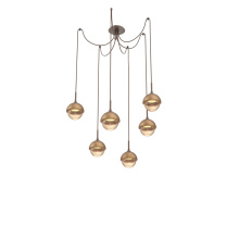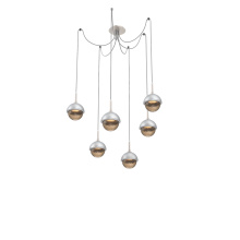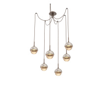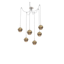 Cabochon Round 6pc Swag Multi - Pendant - Metallic Beige Silver - Amber Blown Glass - Cloth Braided Cord - LED - 2700K - Black Marble