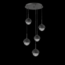 Cabochon 5pc Multi-Pendant-Burnished Bronze-Clear Glass with Black Marble-Cloth Braided Cord