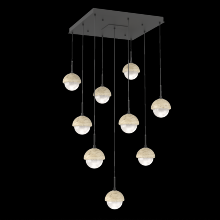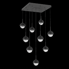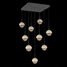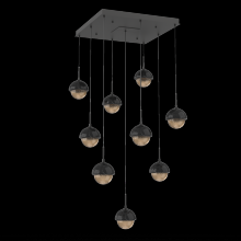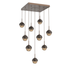 Cabochon 9pc Multi-Pendant-Burnished Bronze-Clear Glass with Black Marble-Cloth Braided Cord