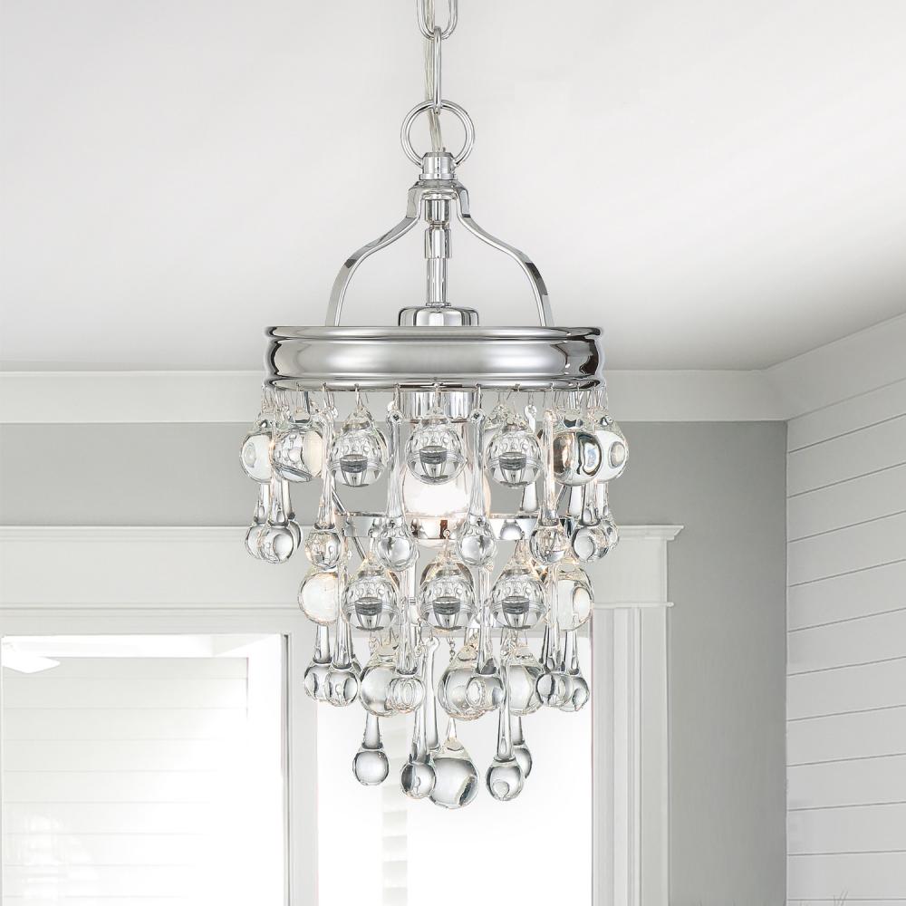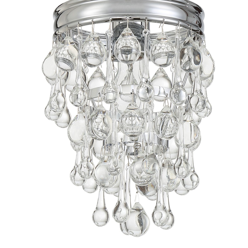 Elegance and glamour will illuminate the room with the Calypso collection. Draped in an abundance of smoothed shaped clear drops and balls, this contemporary collection is a perfect statement to a living room, dining room, bathroom, or entry.