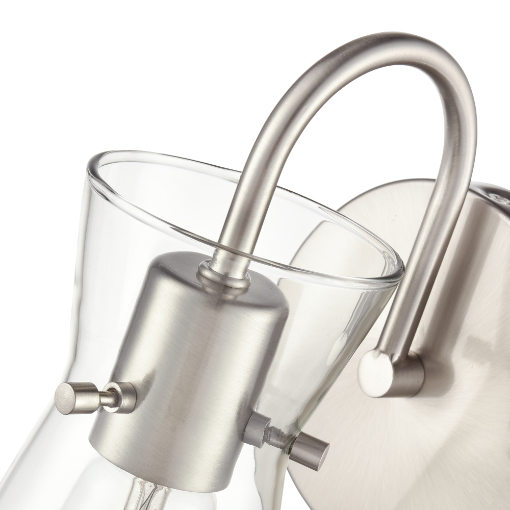 Distinctive beaker-shaped clear glass shades define the look of the Camellia Family of vanity lighting and provide these fixtures with a thoroughly unique appeal. Featuring graceful swan-neck arms finished in polished nickel, modern gold, brushed nickel, or matte black, these fixtures are available as 2-, 3-, or 4-light options. They are the perfect design-forward solution for any bath motif from ultra-modern to farmhouse