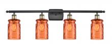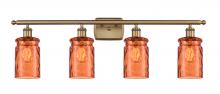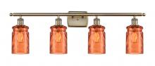 Candor - 4 Light 36" Bath Vanity Light - Incandescent Bulb - Antique Copper Finish - Jester Red Waterglass Shade