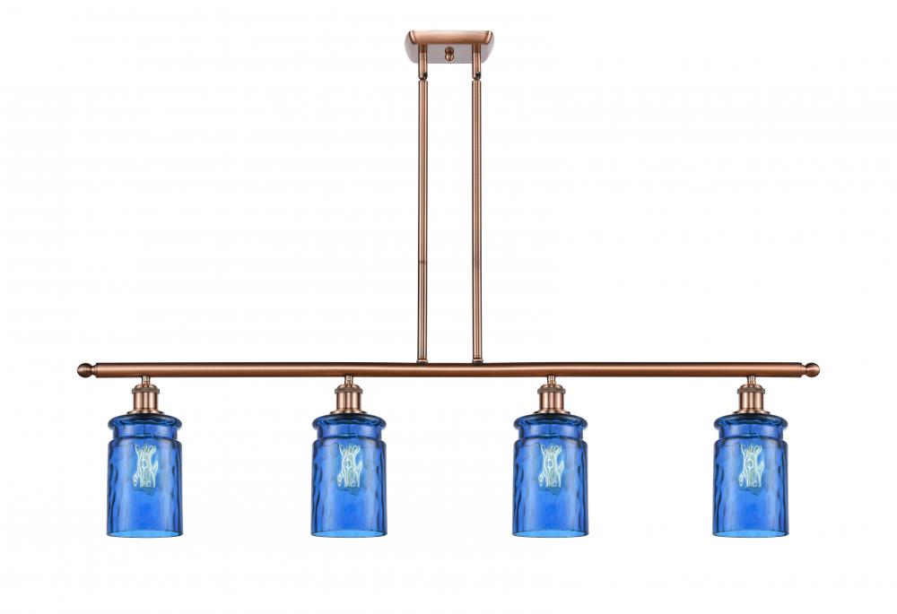 Candor - 4 Light 48" - Stem Hung Island Light - Incandescent Bulb - Antique Copper Finish - Princess Blue Waterglass Shade