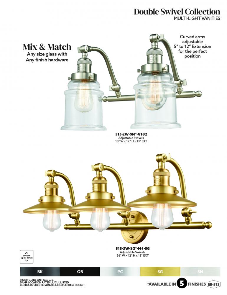 Each Arm Includes Two Solid Brass 180 Degree Adjustable Swivels that allow for the arm and socket to be adjusted up and down and loccked into place.
