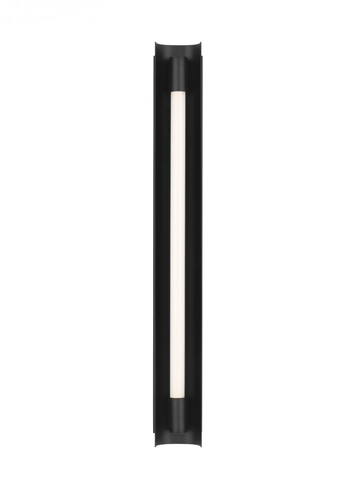 The Carson series by Kelly Wearstler highlights a minimalist combination of light and metal. This modern collection features extruded integrated LED bars providing illumination that complements the sleek styling of commercial applications and minimalist modern design. Available in a Burnished Brass and Midnight Black finish
