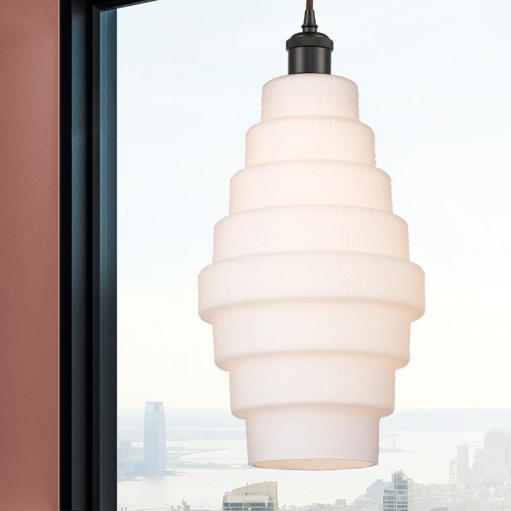 Cascade - 1 Light - 8 inch - Oil Rubbed Bronze - White Shade - Cord hung - Mini Pendant
