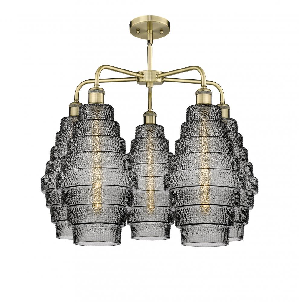 Cascade - 5 Light - 26 inch - Antique Brass - Smoked Shade - Chandelier
