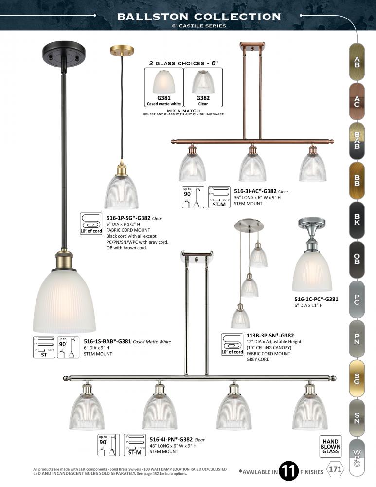 The Ballston collection is comprised of heavy cast components that give the fixture a sturdy contemporary look. We offer the fixture in 11 finishes with a Bare Bulb look or with over 100 possible metal and glass shade options that can change the style to f