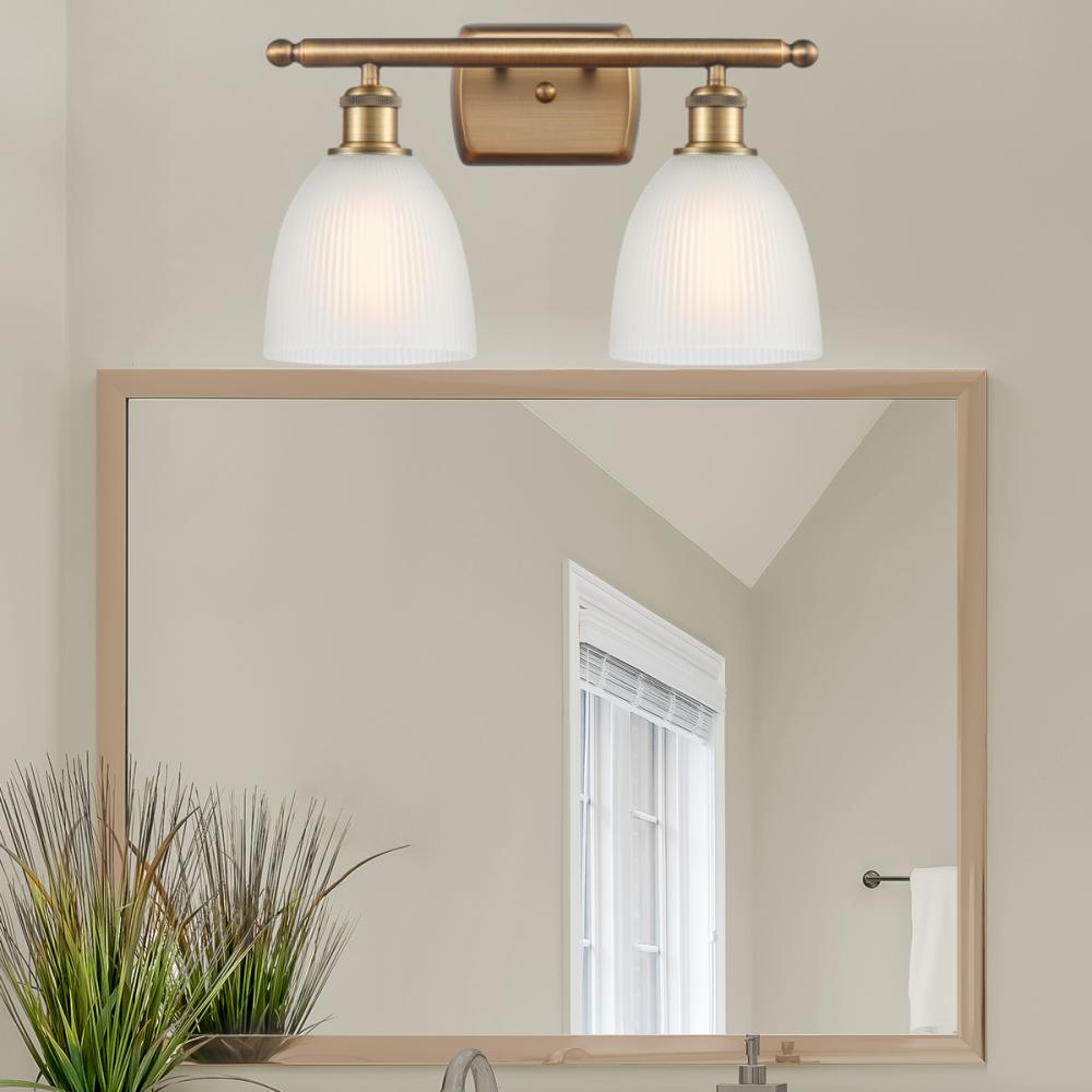 Castile - 2 Light - 16 inch - Brushed Brass - White Shade - Bath Vanity Light