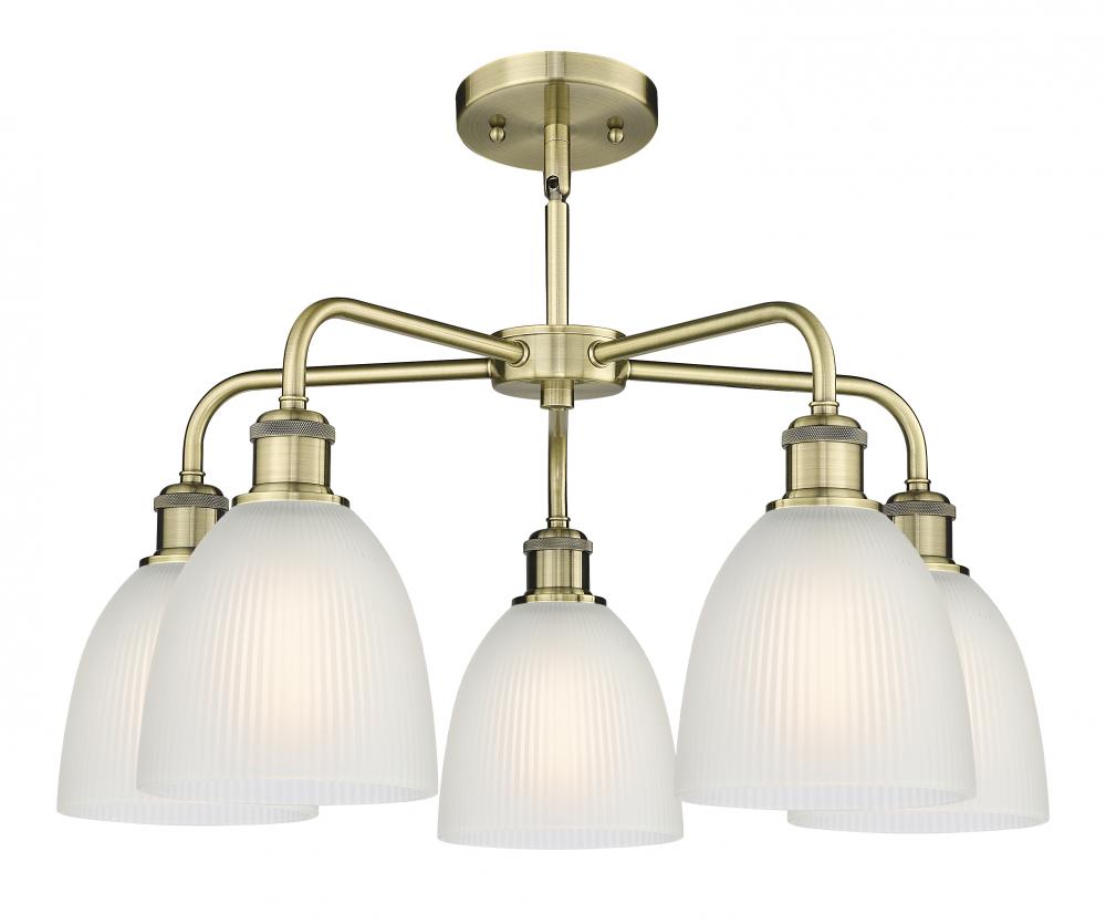 Castile - 5 Light - 24 inch - Antique Brass - White Shade - Chandelier