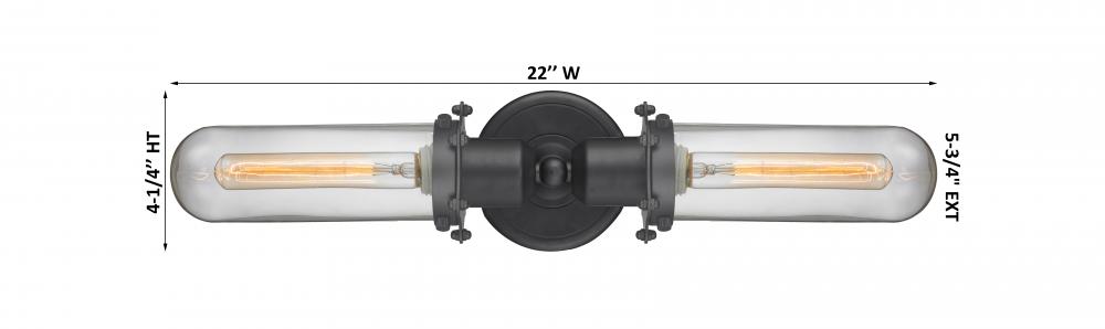 Centri - 2 Light - 22 inch - Matte Black - Clear Shade - Bath Vanity Light