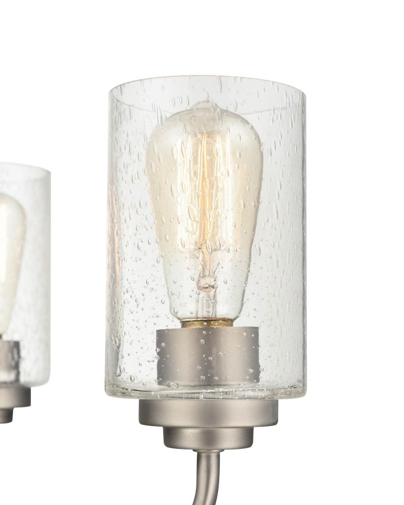 The Moven Collection elevates bold simplicity to a whole new level of design. Strong, elegant lines are set against handcrafted style seeded glass, creating an overall effect that is both refined and striking. The collection is available in either matte black or satin nickel fnish. Bulbs must be purchased separately.