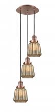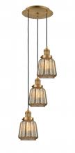Chatham - 3 Light - 14 inch - Antique Brass - Clear Shade - Cord hung - Multi Pendant