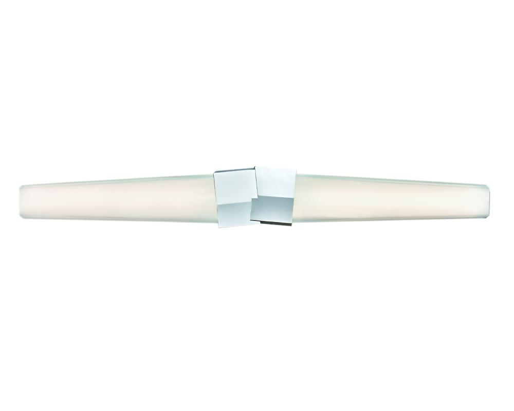 A twin to our popular Artemis fixture but modified with a tapered shade, like Artemis, it features matching acrylic diffusers complemented by an asymmetrical metal bracket. Enjoy glare-free ambient light, installed vertically or horizontally, from this integrated LED sconce. Available in 32 inches, with Chrome or Satin Brass details.