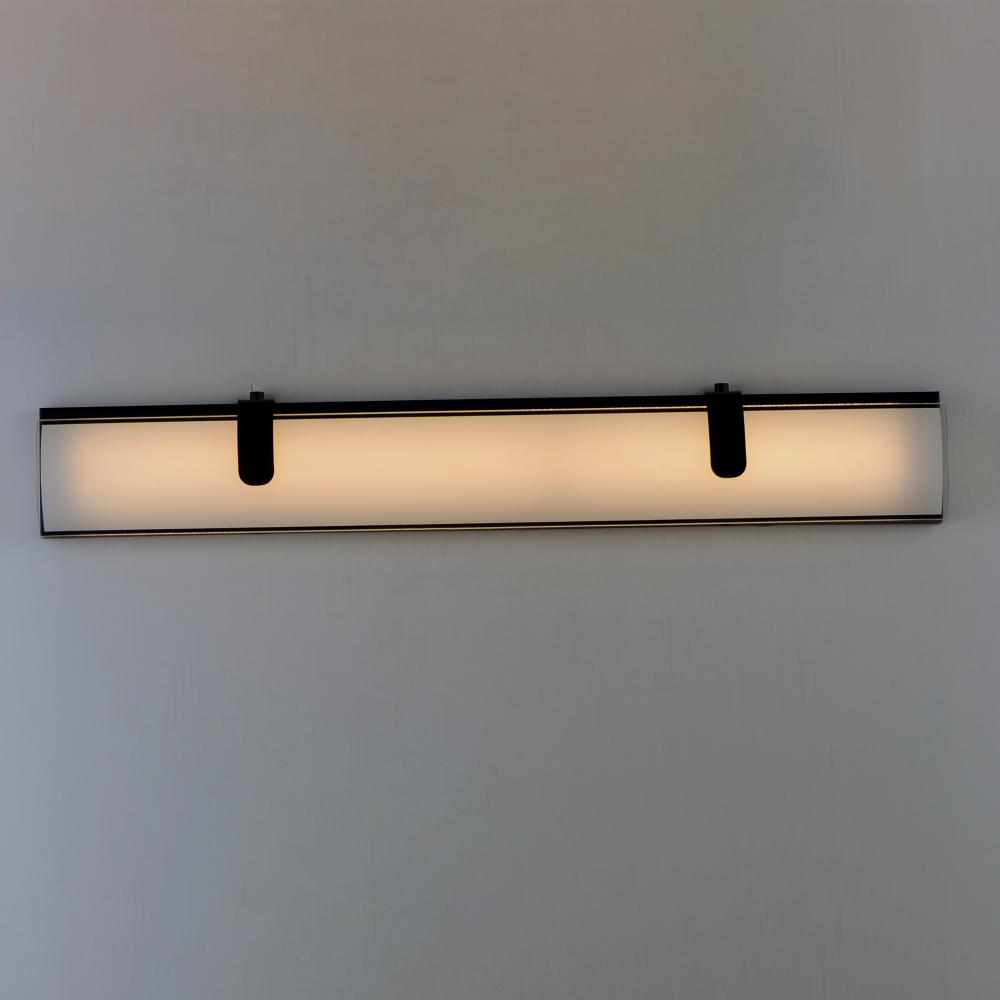 Designed to fit the essentials, this bath vanity series will always come in clutch. Dedicated LED illuminates the backside of a low-profile curved opal White glass sweeping upwards to a metal latch conveniently finished in your choice of Polished Chrome, G
