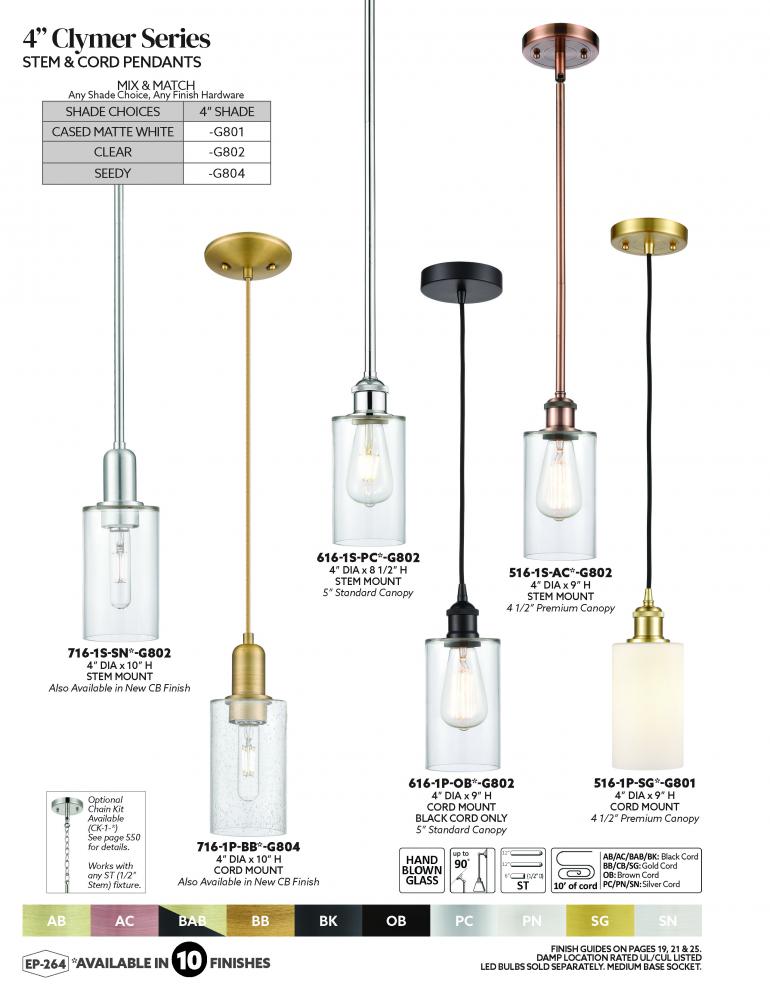 White & Clear heavy glass cylinders and a large selection of frame finishes allow the Clymer series to match any decor.