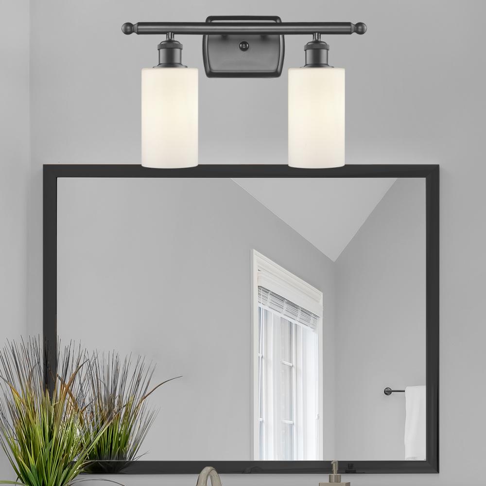 Clymer - 2 Light - 14 inch - Oil Rubbed Bronze - Matte White Shade - Bath Vanity Light