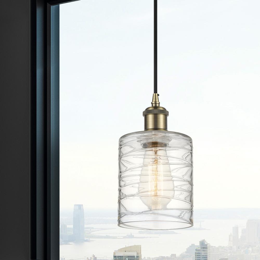 Cobbleskill - 1 Light - 5 inch - Antique Brass - Deco Swirl Shade - Cord hung - Mini Pendant