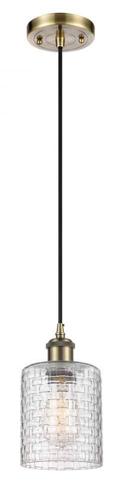 Cobbleskill - 1 Light - 5 inch - Antique Brass - Clear Shade - Cord hung - Mini Pendant